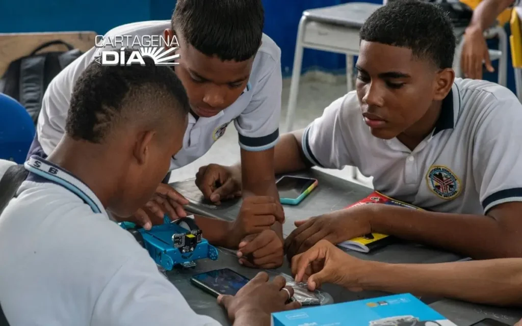 En el proceso, los profesores comprendieron que la innovación no depende únicamente de “tener tecnología”, sino de cómo se transforma la enseñanza. Por eso, recibieron formación en robótica, inteligencia artificial y en el uso de herramientas como Google Workspace y Teams, además de capacitación con la Universidad de Cartagena en innovación pedagógica. También tomaron clases en una plataforma sobre cómo incorporar la robótica en distintas asignaturas —por ejemplo, para enseñar ciencias sociales—. La formación no se limitó a los docentes de informática: incluyó a profesores de todas las áreas.